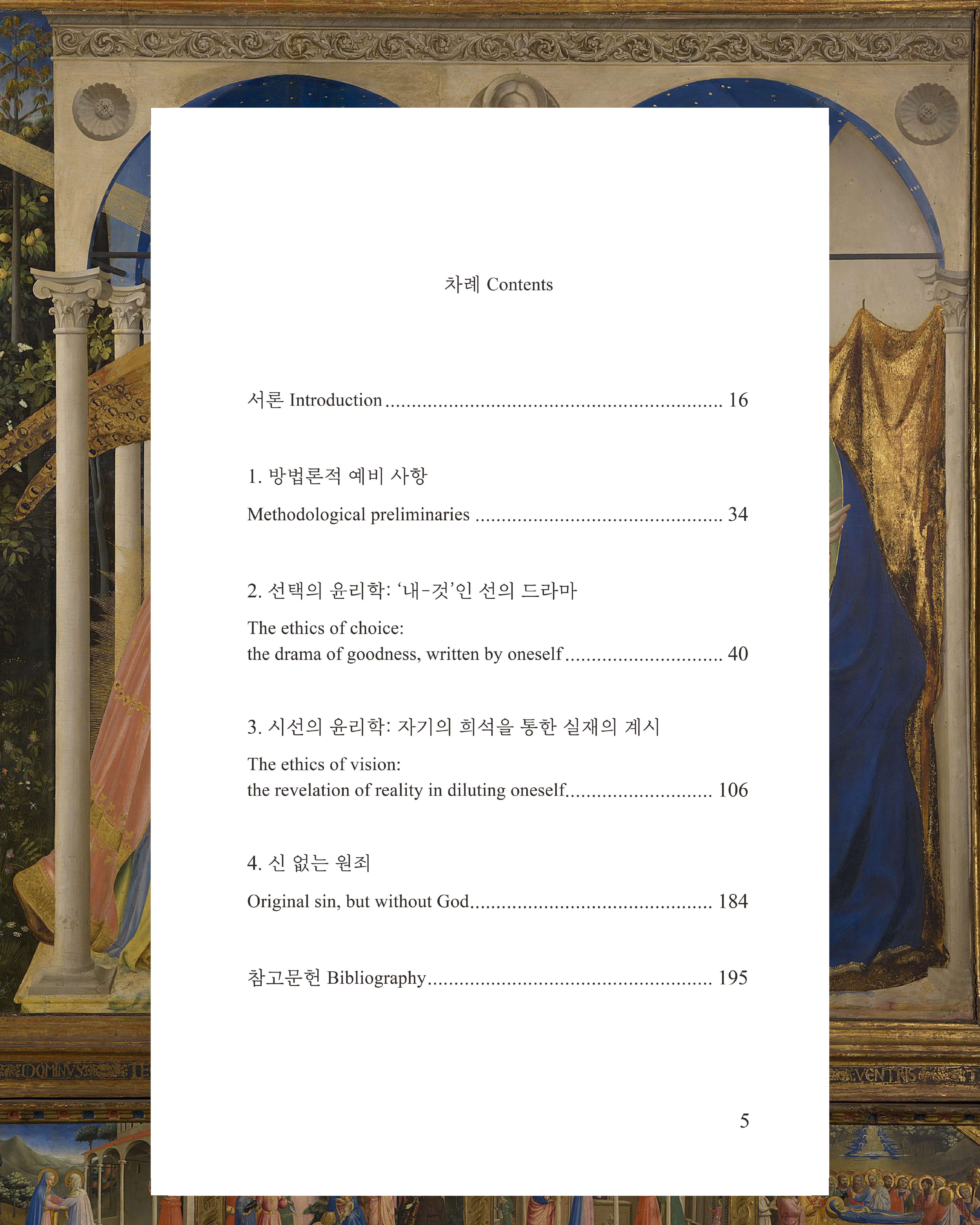 각 윤리의 주체가 자유롭게, 그 자신으로서 관철함에도 불구하고 모두에게 똑같이 타당할 선이 과연 존재할 수 있을까? 『선의 캐리커처: 선택과 시선의 틈새에서』(2025)는 인간으로서 우리가 선Good, 善을 향해 품는 여러 기대들이 완벽하게 충족될 수는 없음을 그려내는 철학 에세이이다. 한편으로 선은 우리를 진정한 우리들 자신으로 만들어 주는 자기의 표현물이어야 하지만, 다른 한편으로는 나를 위해서만 작동하는 사적 원칙이 아닌 복수의 개인에 의해 준수될 믿음직스러운 공적 규범이기도 해야 한다. 그러나 시몬 드 보부아르(Simone de Beauvoir, 1908~1986), 시몬 베유(Simone Adolphine Weil, 1909~1943), 그리고 아이리스 머독(Dame Iris Murdoch, 1919~1999)의 사유에 대한 이 책의 개괄과 비판은 선에 대한 우리의 두 기대들이 서로 양립 불가능할 수 있음을 조명한다.
