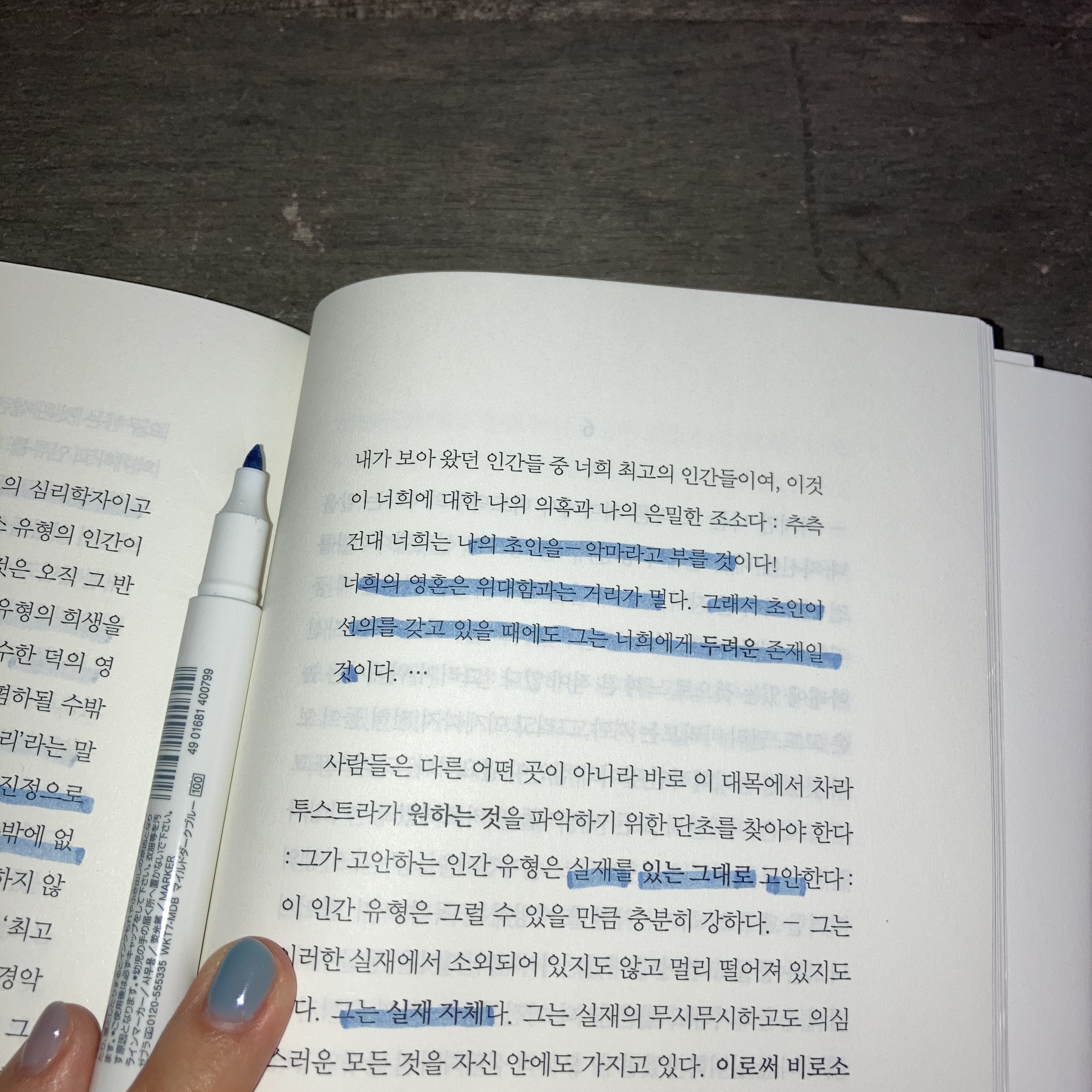 내 짧은 생을 돌아보니 당장 전공하고 있는 후설의 책보다 니체의 책을 더 많이 읽었다. 어떤 책에서든 감춰지지 않는, 이따금은 우스꽝스러울 정도로 강하게 느껴지는 그의 자기애와 자신감이 부러운 요즘이다. 그는 자신의 초인 개념이 대중적으로는 악마적인 것으로 낙인 찍힐 것임을 예견하면서도 어째서 아무렇지 않을 수 있을까? 아니, 보다 근본적으로, 초인은 정말 악마가 아닌 것이 맞을까? 나는 여전히 이타심과 타인에 대한 희생적인 배려, 모든 인간 사이 평등의 '선함'뿐 아니라 '고귀함'에 대한 믿음까지도 붙들고 있다. 아마 앞으로도 이렇게 살아갈 확률이 높다고 생각한다. 하지만 니체의 주장이 정말 참이라면 어떻게 해야 할까? 어떻게 살아야 할까? 오늘 오후 나는 카페의 거친 벽에 대고 잘 모르겠다고 중얼거렸었다.